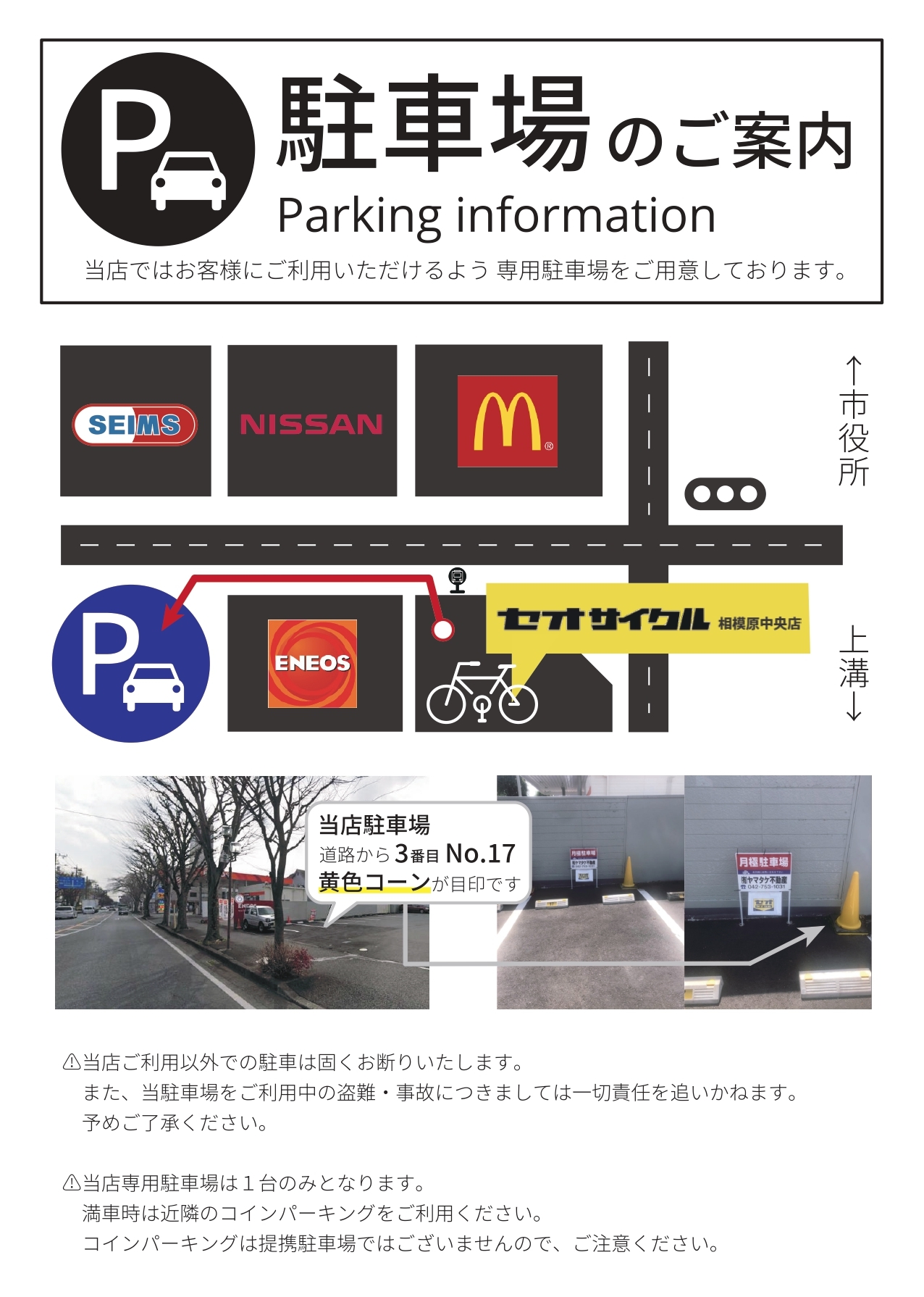 ※提携駐車場ではございませんので、ご注意下さい。