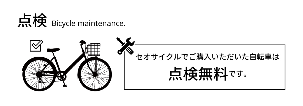 セオサイクルでご購入していただいた自転車は点検無料です。