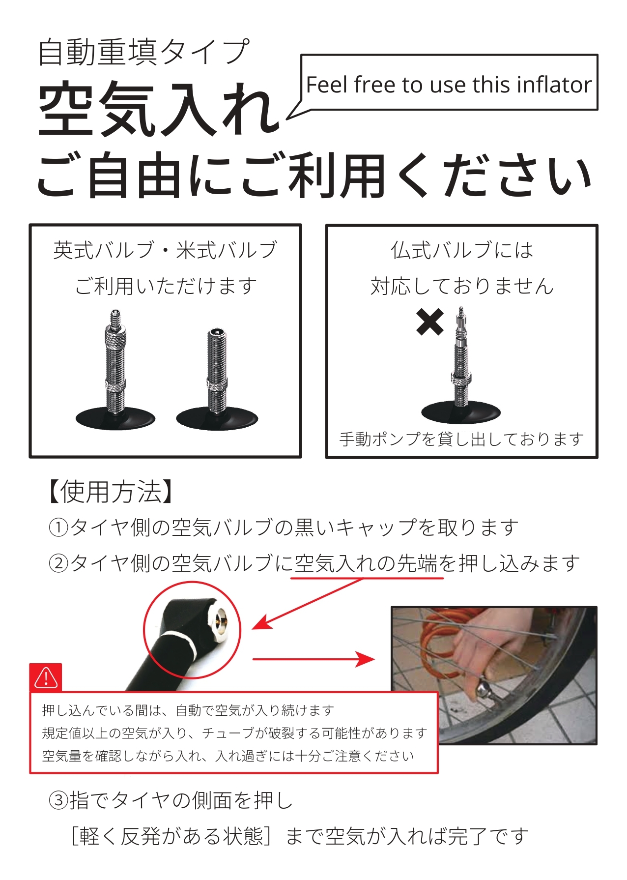 自動充填タイプの空気入れをご利用いただけます。