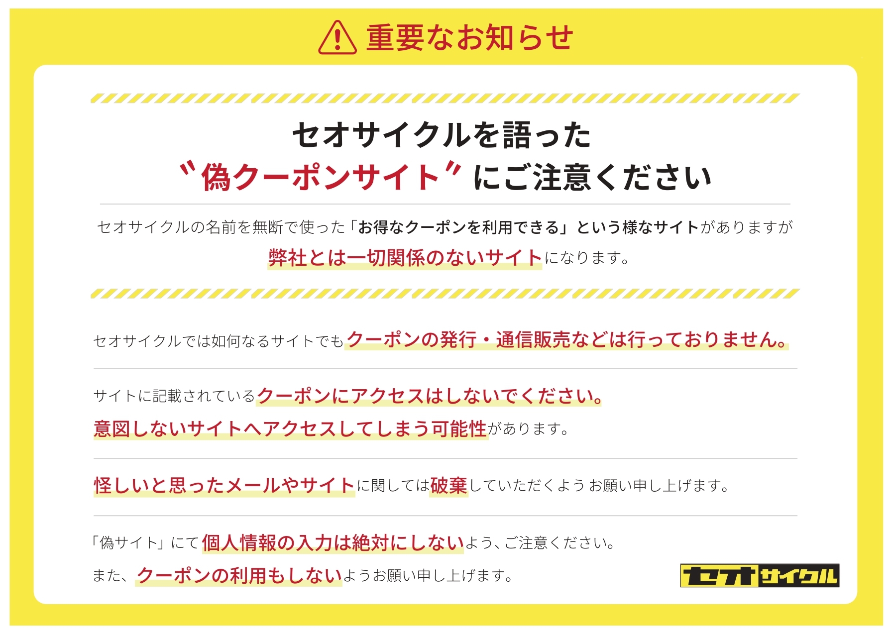 ・自転車をお持ち込みの際は、店舗外に自転車をお止めいただき、スタッフにお声がけください。