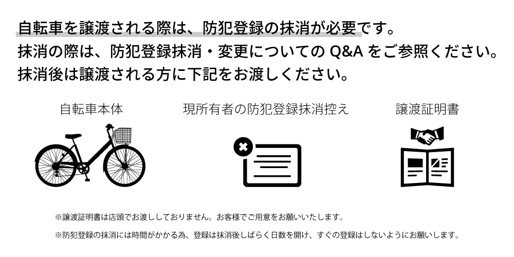 詳細につきましては、神奈川県防犯登録協会「よくある質問」をご参照ください。