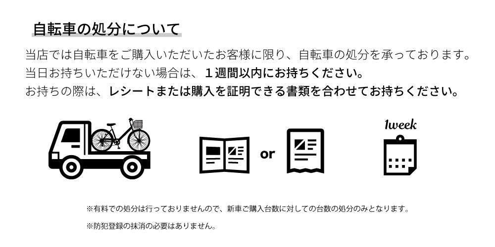 新車をご購入頂いた方のみ自転車の処分を承ります。