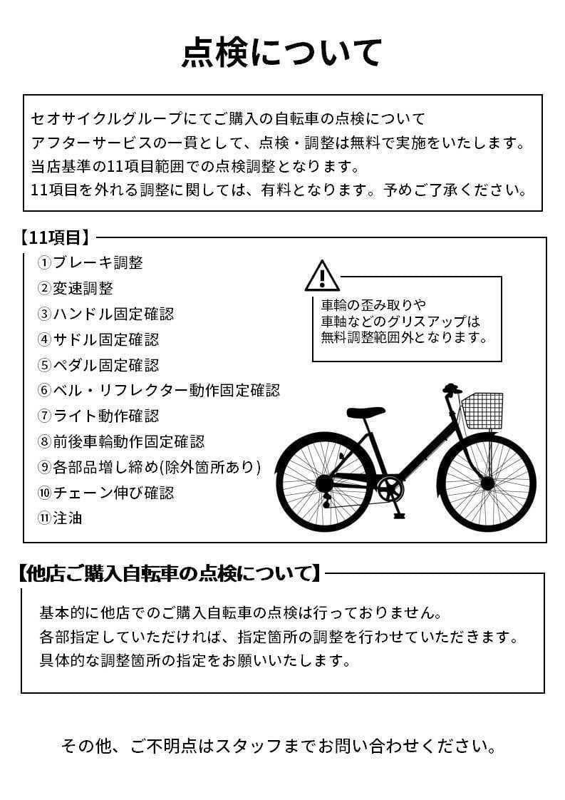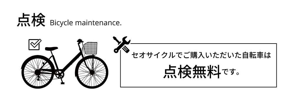 セオサイクルではお買い上げいただいた自転車がご購入後も安心して乗り続けていただけるように無料点検を行っております