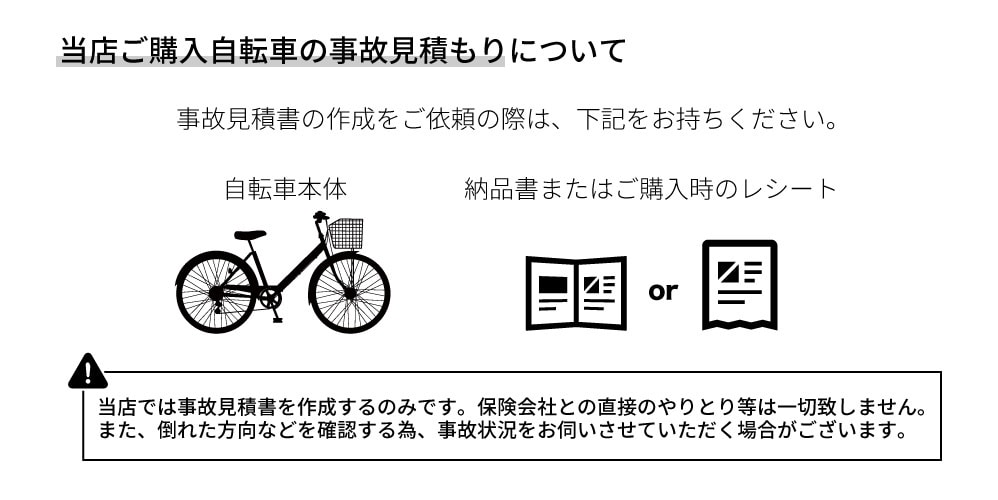 原則、当店でお買い上げいただいた自転車以外のお見積書の作成は行っておりません。