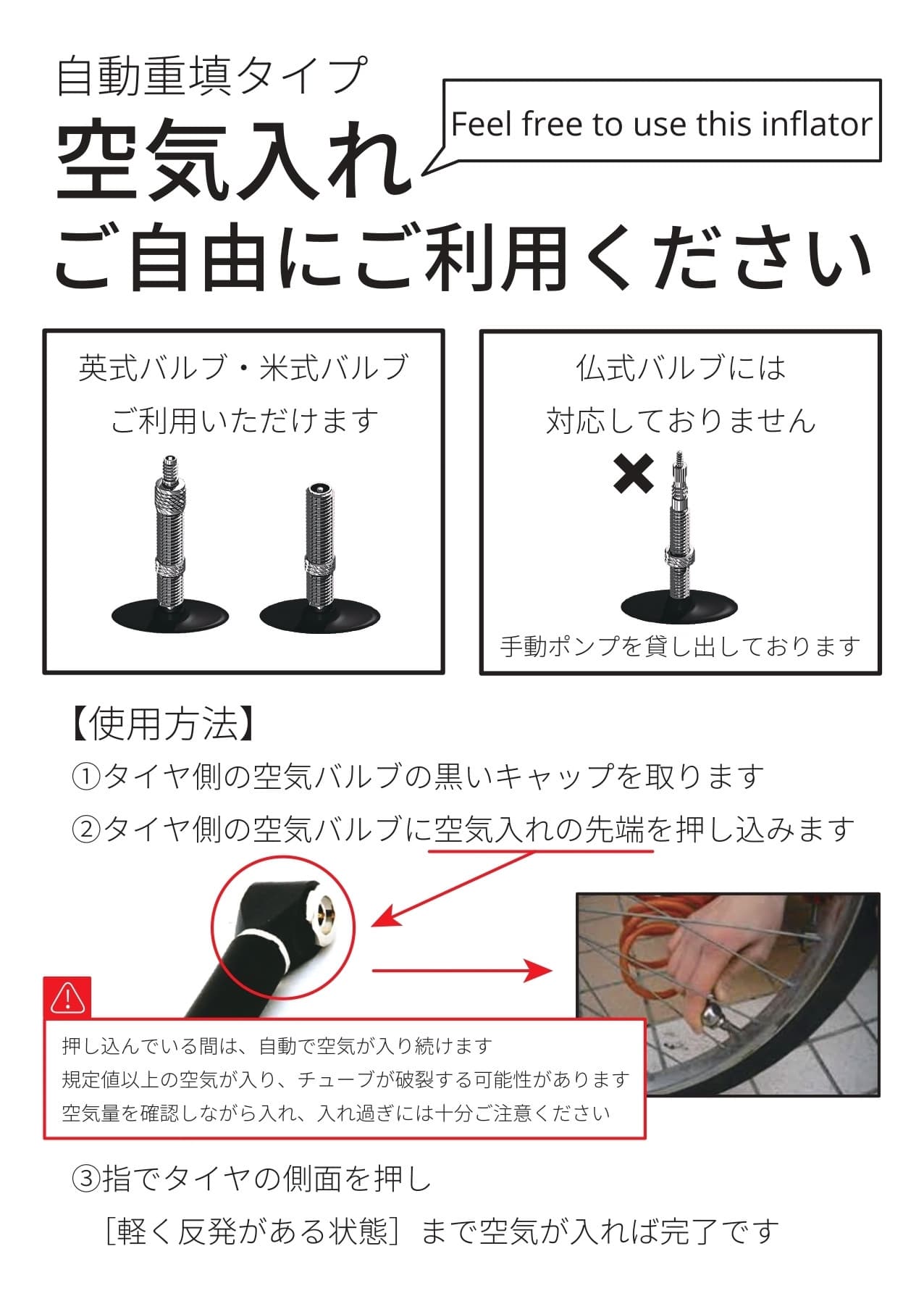 空気量の確認・タイヤの摩耗状態の確認・加入後1年間使用できる状態かを確認し、交換が必要と判断になった場合は交換を実施 |